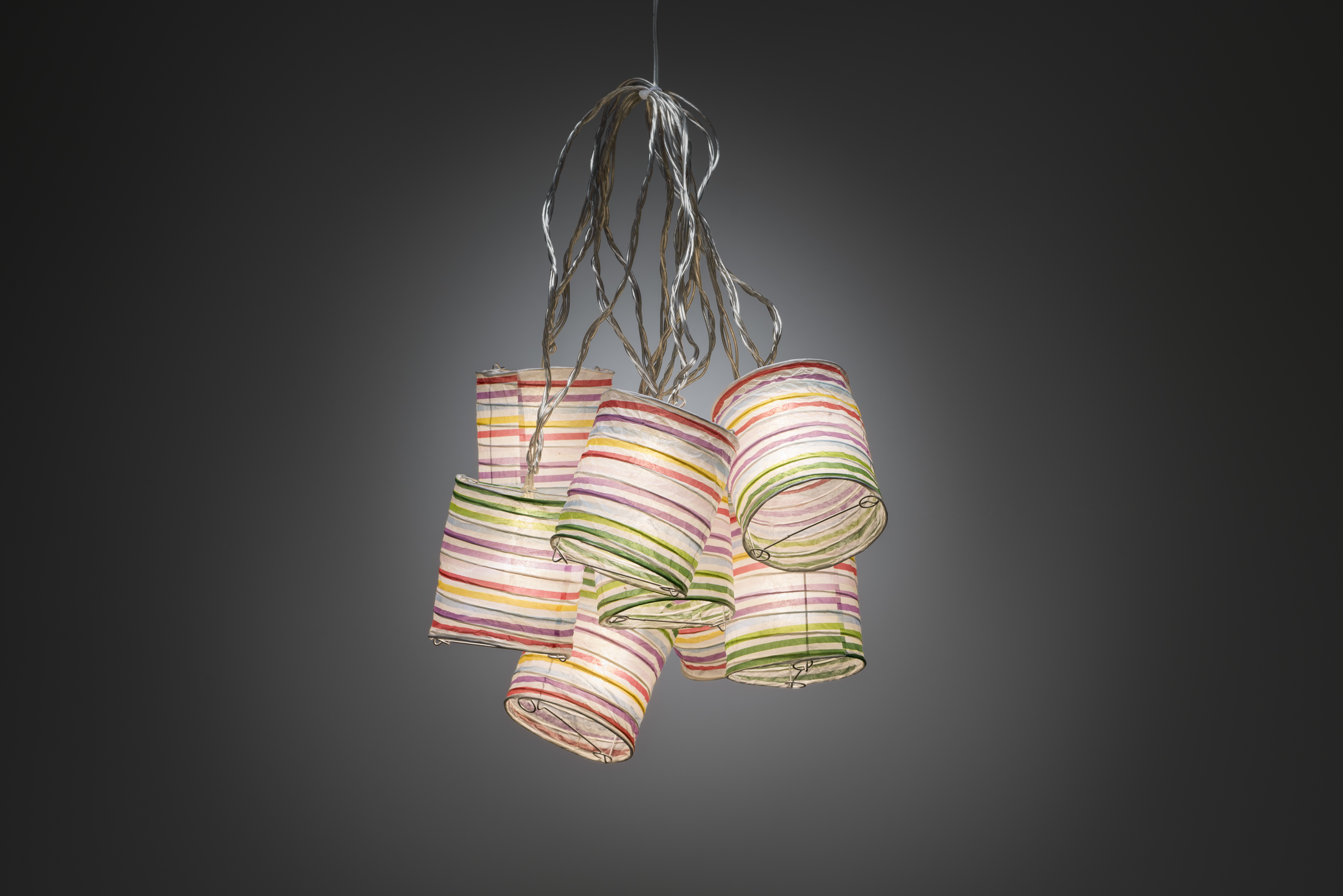 Produkttyp: Leichte DekorationsketteLED Dekolichterkette, bunte Papierlaterne, 16 warm weiße Dioden, 24V Innentrafo, transparentes Kabel
