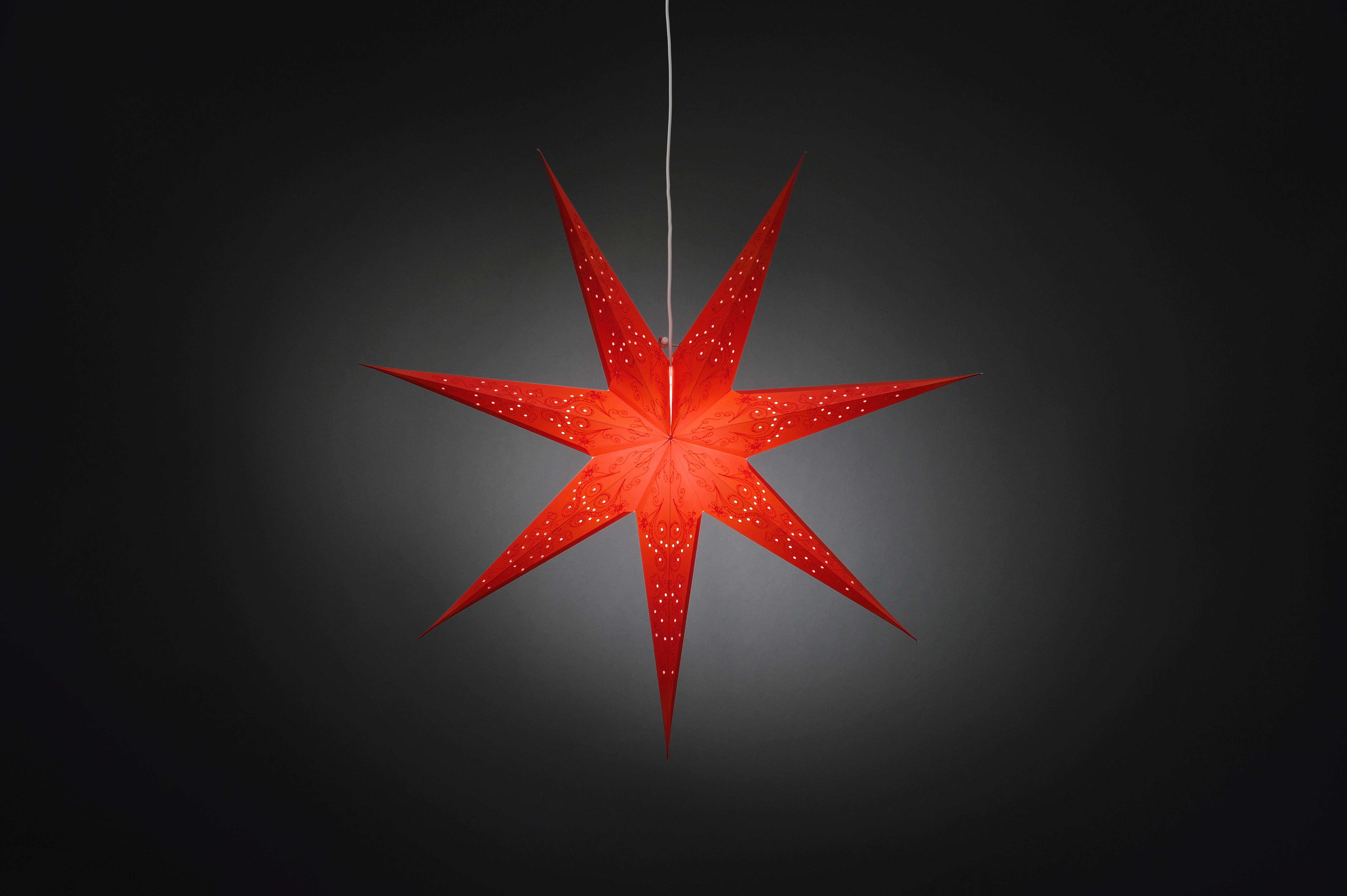 Technische Daten:- Roter Papierstern, perforiert und rot bestickt