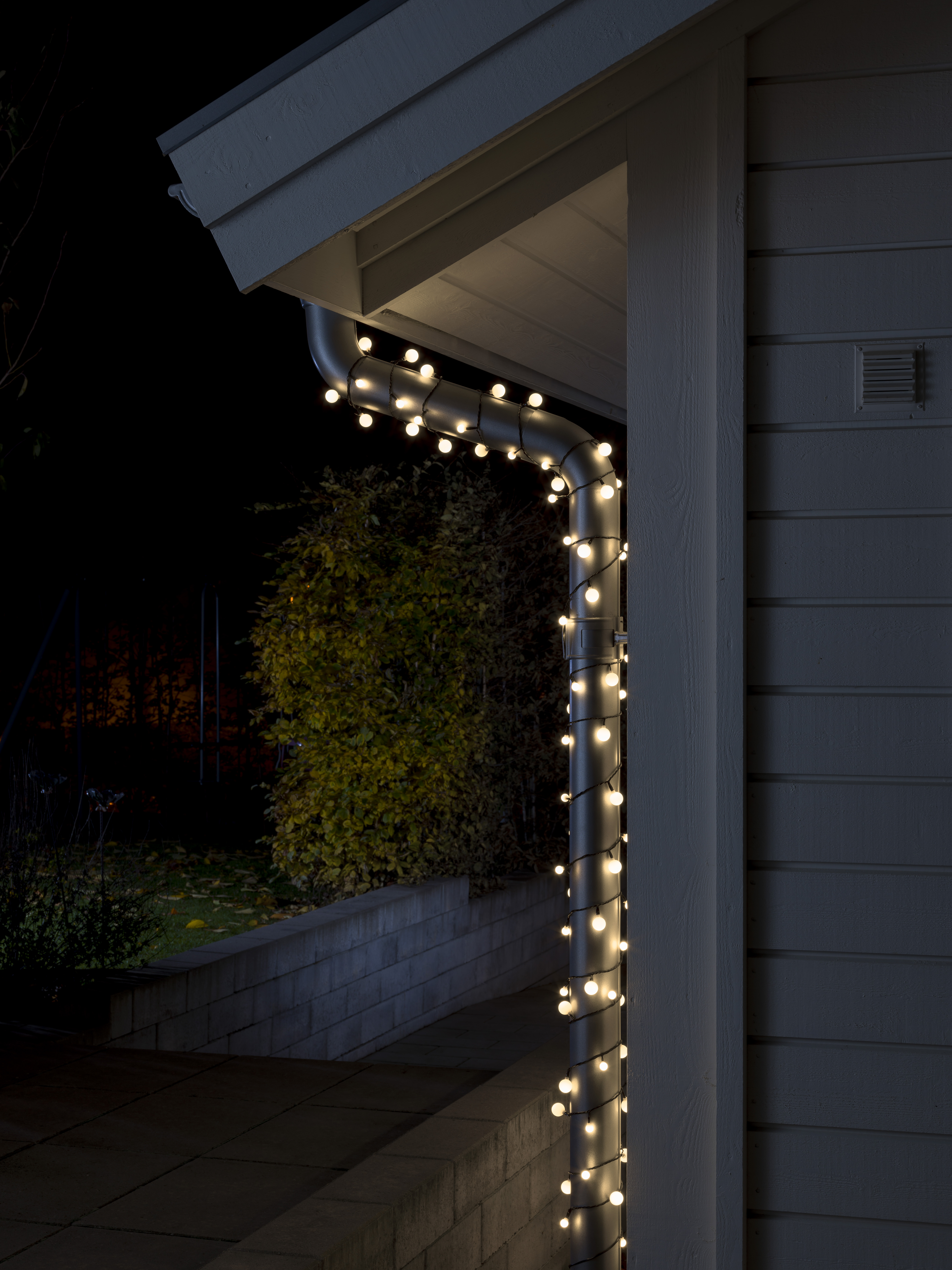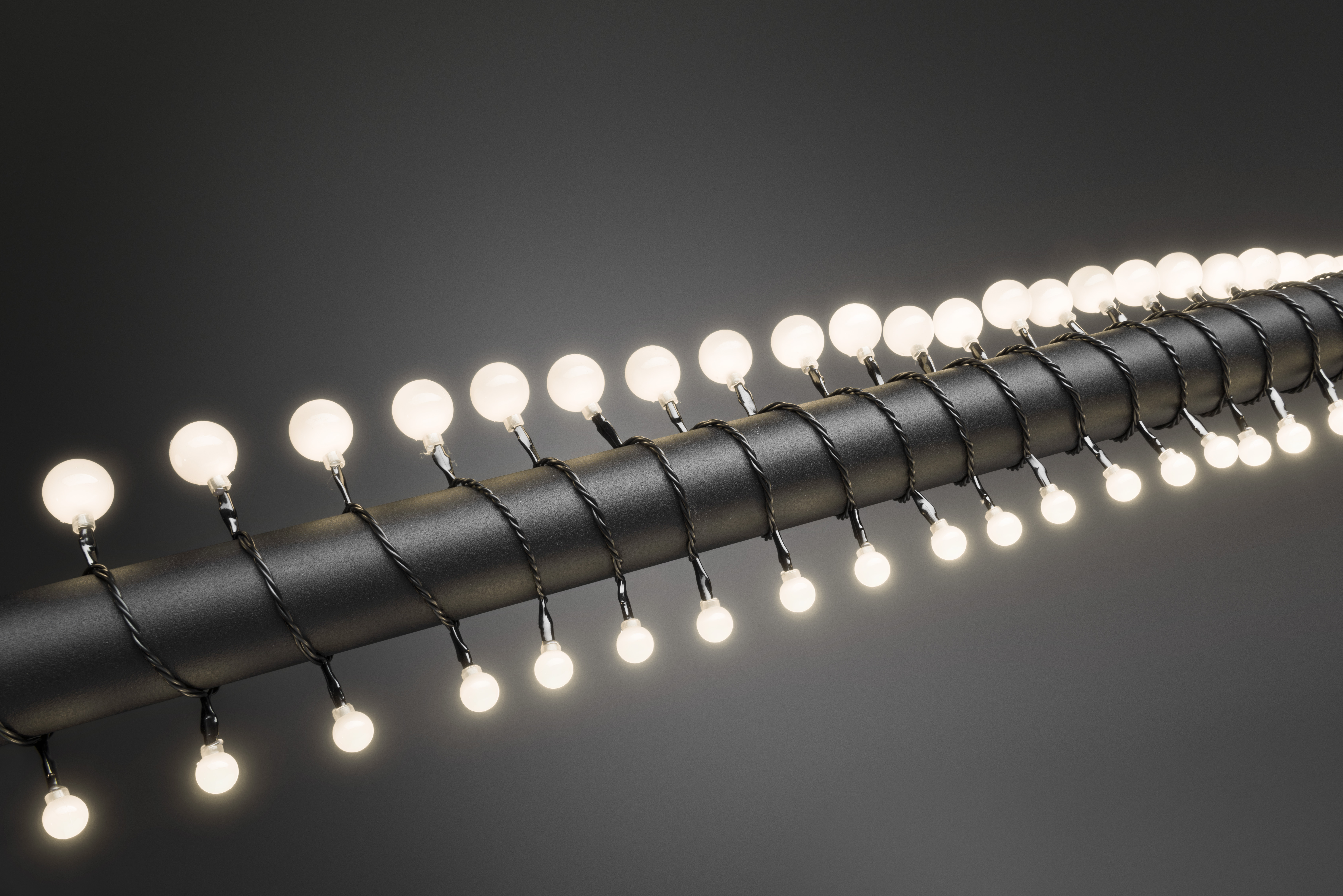 LED Globelichterkette, kleine & große runde Dioden, 80 warmweiße Dioden, 24V Außentrafo, schwarzes Kabel