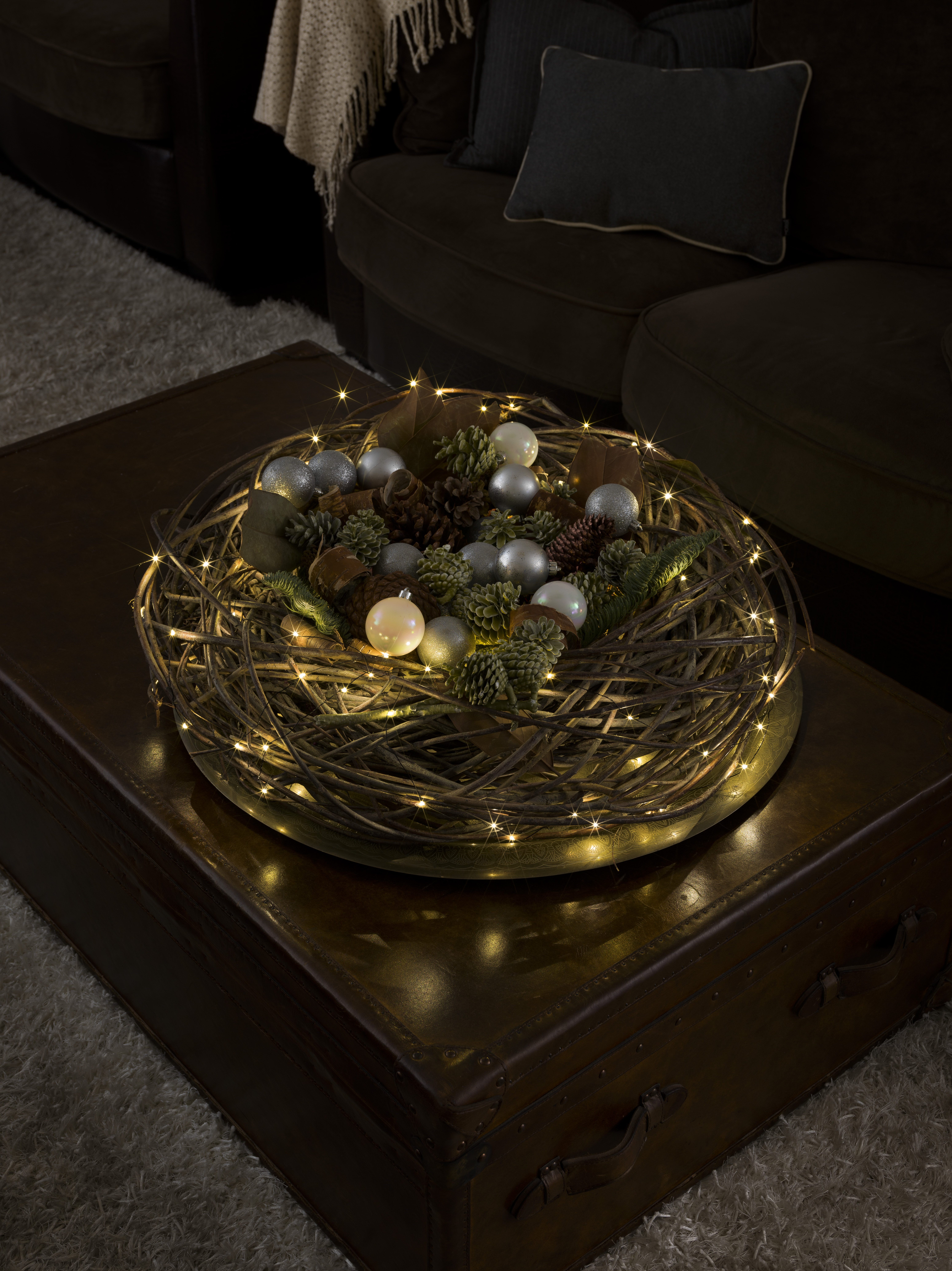 Vorhang auf für ein zauberhaftes Dekorations-Highlight. Wie 50 kleine Tautropfen aus denen weißes Sternenlicht strahlt, funkelt diese filigran gearbeitete Tropfenlichterkette in der Dunkelheit. Ob auf dem festlich gedeckten Tisch, in einem Glasgefäß oder in einem Gebinde verarbeitet – diese Dekolichterkette aus hauchfeinem schwarzen Draht wird alle Blicke auf sich ziehen. Mit hochwertigen, eleganten Lichteffekten wird es spielendleicht, eine atemberaubende Atmosphäre zu schaffen mit der Sie Stil und Kreativität beweisen. Stellen Sie sich schon mal auf zahlreiche Komplimente Ihrer Gäste ein!