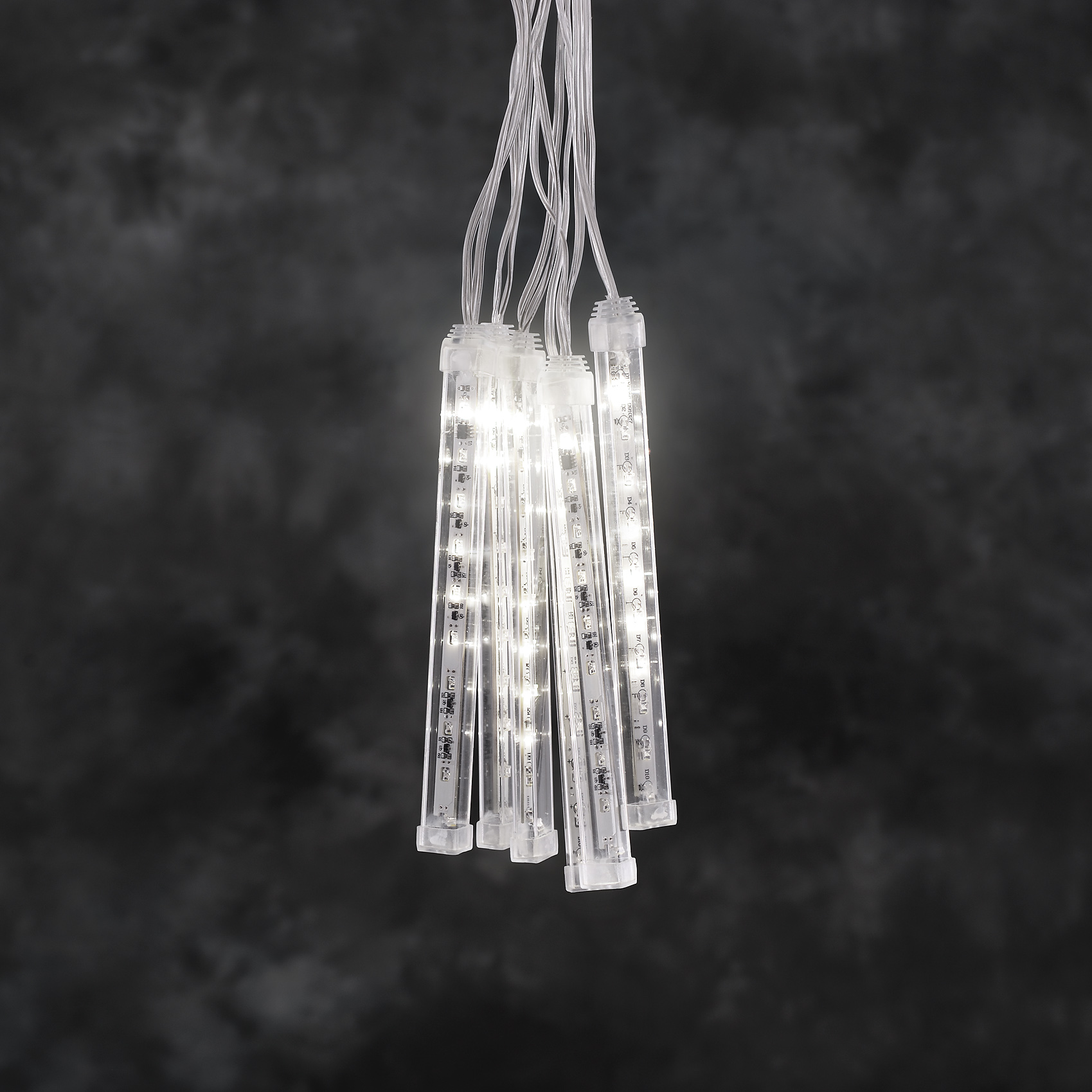 LED Leuchtstäbe Lichtervorhang, 6 Stäbe, funkelnder Schneeeffekt, 60 warmweiße Dioden, batteriebetrieben, bis zu 130h, transparentes Kabel