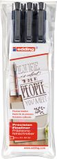 Präzisionsfeinschreiber zur Anfertigung von Skizzen, technischen Zeichnungen und zum Arbeiten mit Schablonen. Das Set enthält Faserzeichner in den Strichbreiten 0,25 mm, 0,35 mm und 0,5 mm. Die feinen metallgefassten Spitzen sorgen für eine hohe Präzision. Die enthaltene Pigmenttinte ist wasserfest und lichtbeständig. Die Kappe hat einen hochwertigen Edelstahlclip.